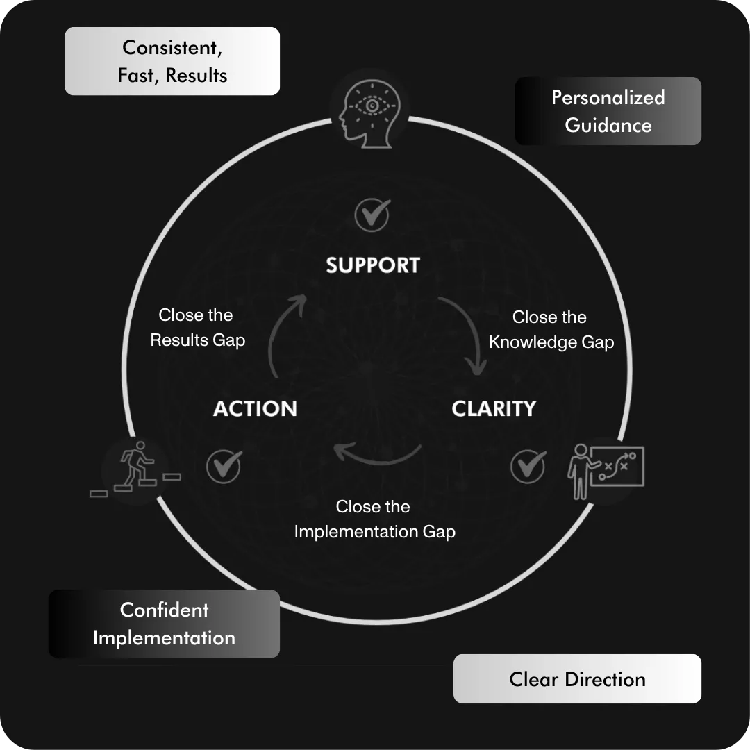 Beyond planning and installing growth systems, ongoing coaching and consulting keeps you locked in, focused, and productive. You get clarity on your next steps to continue growing with confidence and control so you can continue momentum and hit your next level month after month,